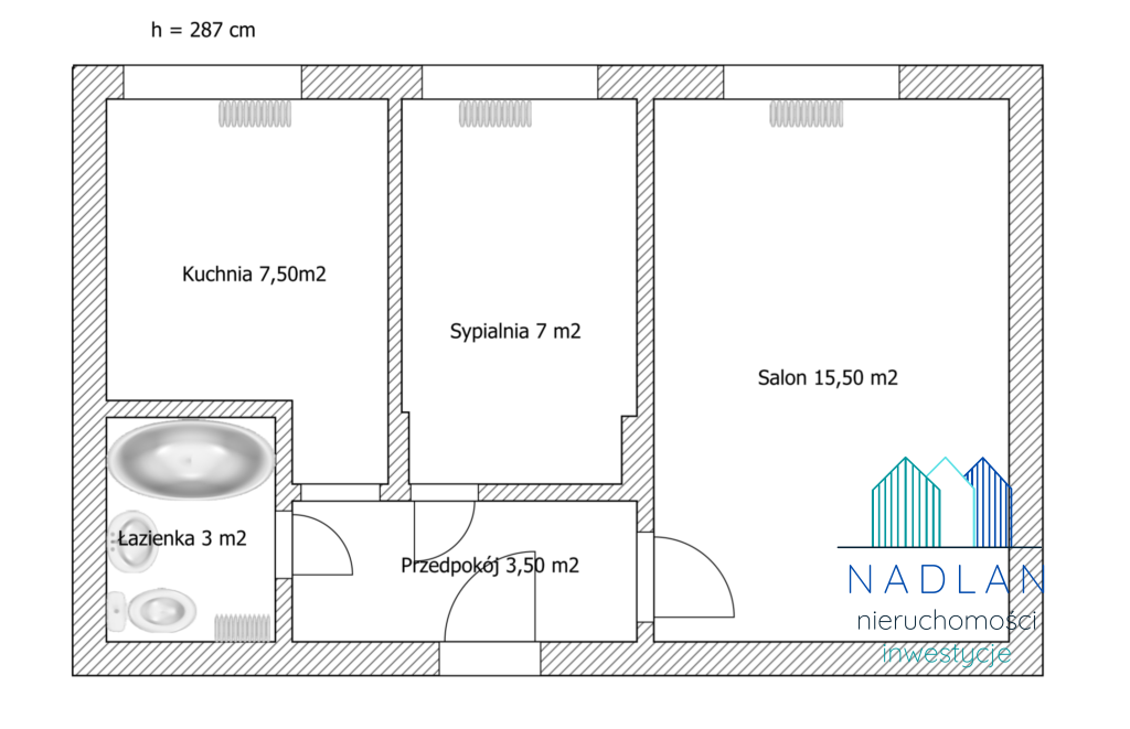 • przestronne, widne pokoje – oddzielna kuchnia z oknem 7,49m2, pokój dzienny 15,33m2, sypialnia 7,03m2, przedpokój 3,54 m2, łazienka 3m2